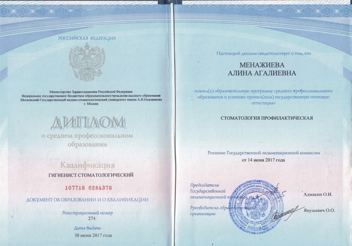 - 2017 — Московский государственный медико-стоматологический университет Евдокимова