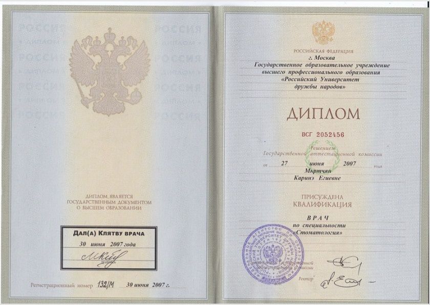 - 2002-2007 — Российский Университет Дружбы Народов, медицинский факультет, стоматология