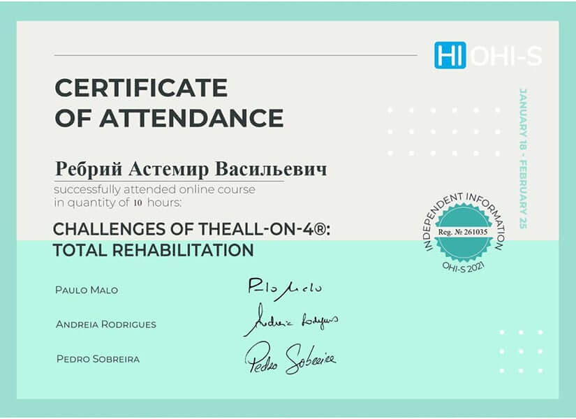 - 2019 — АНО ДПО Академия инновационной стоматологии «Актуальные вопросы ортопедической стоматологии»