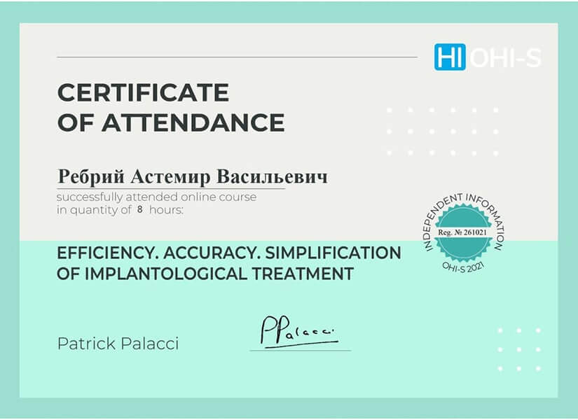 - 2019 — АНО ДПО Академия инновационной стоматологии «Стоматологическая имплантология»