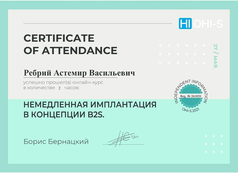 - 2021 — НЕМЕДЛЕННАЯ ИМПЛАНТАЦИЯ В КОНЦЕПЦИИ B2S OHI-S Бернацикй Борис