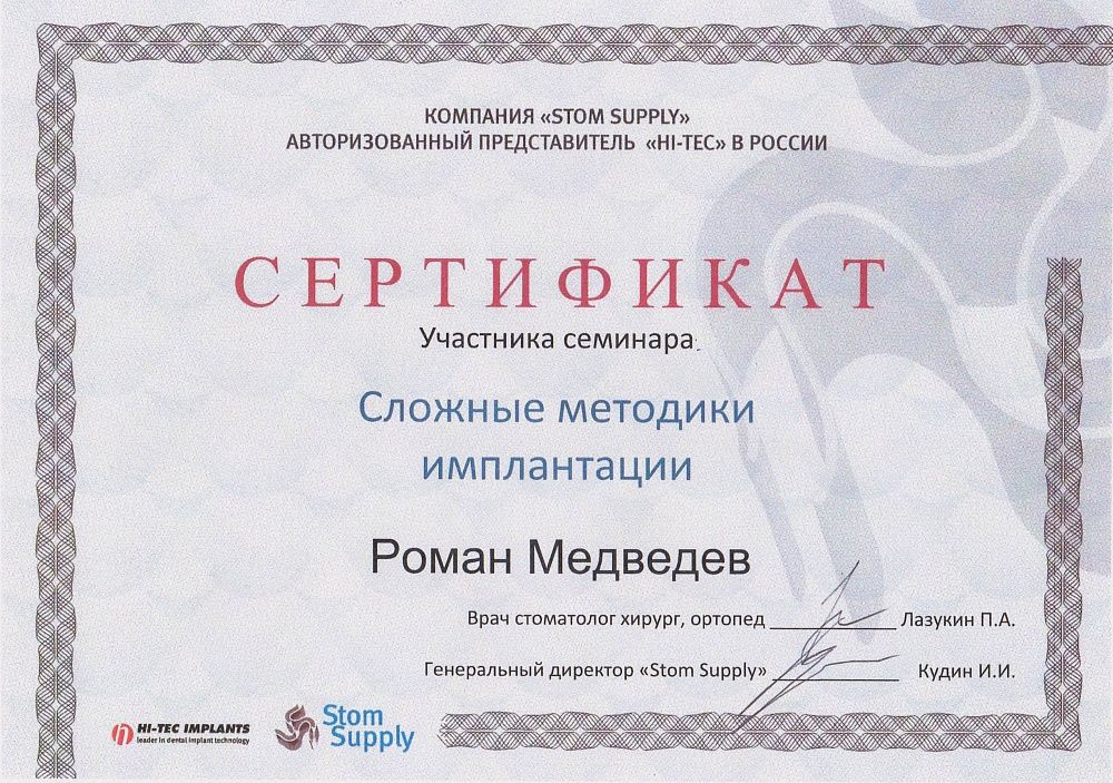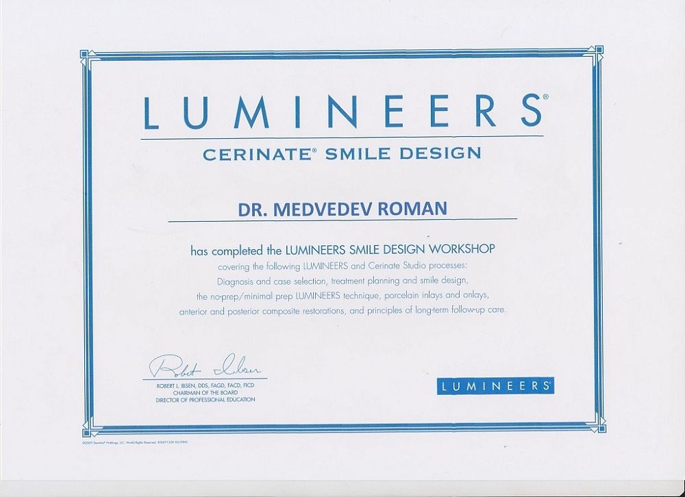 Наш доктор, Медведев Роман Сергеевич, является сертифицированным специалистом по люминирам