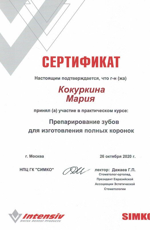 - 2018-2020 — Ординатура по ортопедической стоматологии на базе МГМСУ им. А.И. Евдокимова