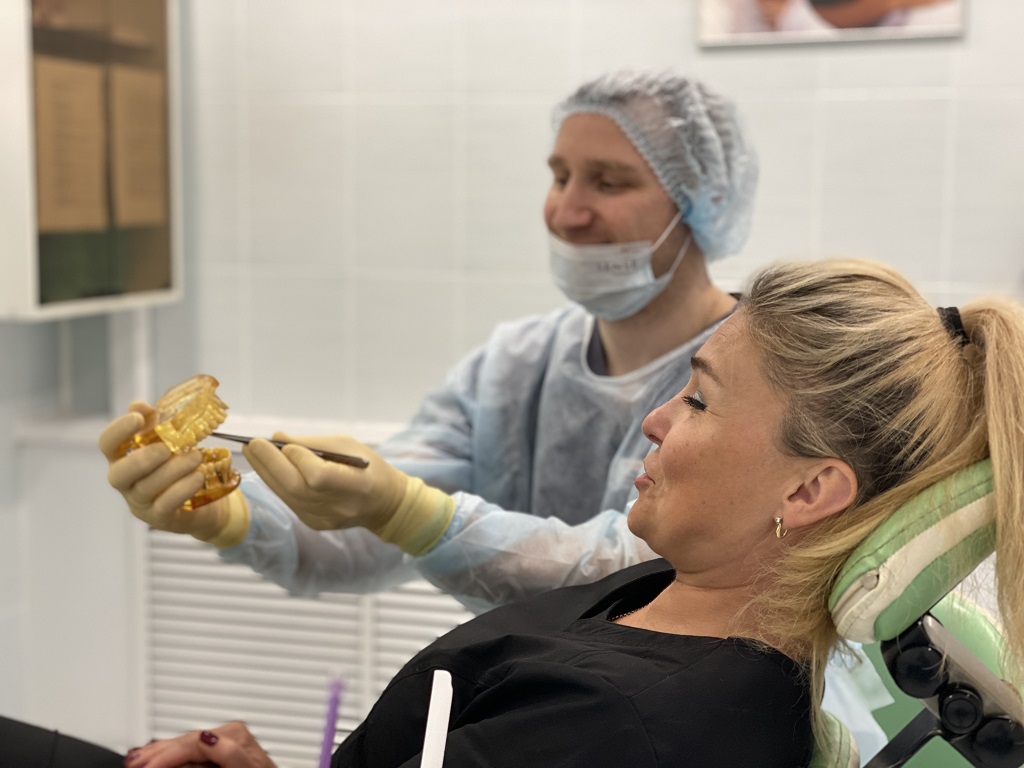 Стоматолог оценивает состояние полости рта, слизистых оболочек, выявляет сопутствующие заболевания (например, заболевания десен), аллергии, хронические болезни и принимаемые препараты